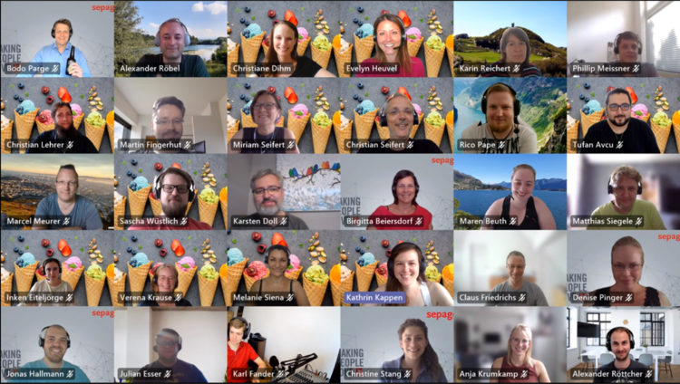 Dass sich jeder Mitarbeity gut informiert und eingebunden fühlt, ist sicherlich gar nicht immer so einfach – gerade im virtuellen Setting. Wir haben viele Formate, die genau hier unterstützen können. Angefangen mit unserem „sepagoCall“ – ein monatlicher Austauschtermin, in dem Neuigkeiten zu den Kundenprojekten, unseren Finanzen, Erfolgen, Herausforderungen oder Unternehmensentscheidungen geteilt werden. Jeder kann und darf hier präsentieren, Fragen stellen, und/oder begleitende GIFs in den Chat posten 😉
