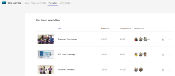 Mit Viva Learning soll Lernen im Unternehmen seinen „Exotenstatus“ verlieren und Bestandteil der täglichen Arbeit werden. Dazu soll das Auffinden, die Auswahl, das Nachhalten und auch Weiterempfehlen nützlicher Lerninhalte vereinfacht und besser integriert werden. Viva Learning soll über Teams Lerninhalte aus unterschiedlichsten Quellen, vom unternehmenseigenen SharePoint bis zu Inhalten von Schulungsanbietern wie LinkedIn Learning, Skillsoft, Coursera, bis hin zu SAP SuccessFactors werden in der App verfügbar machen. Der Zugriff auf die eigentlichen Inhalte erfolgt dann entweder in Teams oder über einen Browser. Für Inhalte von Drittanbietern sind mit diesen Lizenzvereinbarungen zu schließen. Man kann Lerninhalte anderen empfehlen – und bei der Gelegenheit gleich ein Datum festlegen, bis wann der „Empfehlung“ gefolgt werden soll. Der Status der Empfehlungen kann nachverfolgt werden und man kann „Erinnerungen“ versenden. Bald soll es auch möglich sein, verpflichtende Lerninhalte zuzuweisen (zB für Trainees).